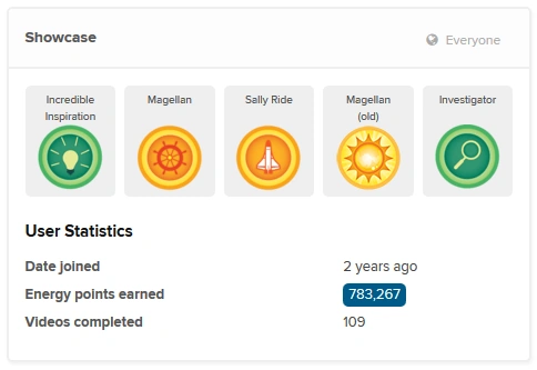 - Users can also get additional energy points from earning badges like Da Vinci (Which is now retired.)