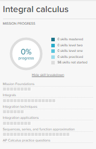 The Integral calculus Math Mission is a set of skills on Khan Academy. This mission consists of Integral calculus skills.