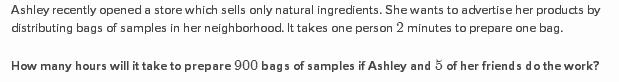 - Perform the division conversions needed: This problem describes a situation where a person is trying to make an object that takes a certain amount of time with a certain number of friends. The student is asked to figure out how much time it will take.