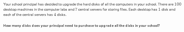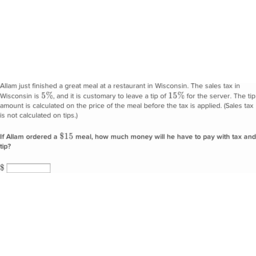 - Multiply to get the total answer: This problem asks for a total amount of two other quantities that are not necessarily equally weighted. The student is asked to find the total amount needed for the situation.