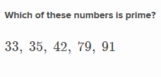 - Find the prime number: This problem lists five numbers and asks the user to select the one that is a prime number.
